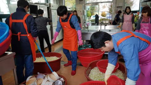 오일허브코리아인들은 함께 무를 썰고, 다듬고, 버무려서 김치와 부식재료 등을 어르신댁에 전달해드립니다.